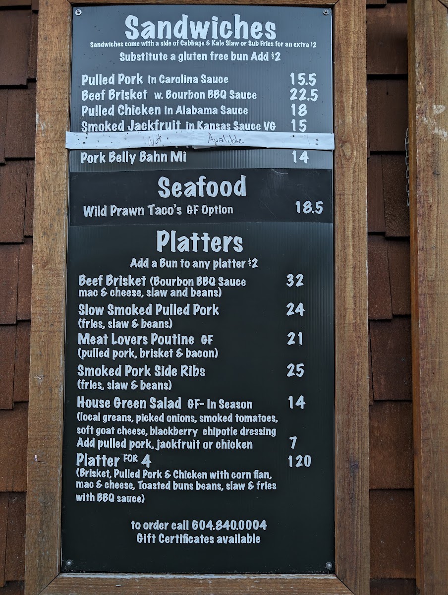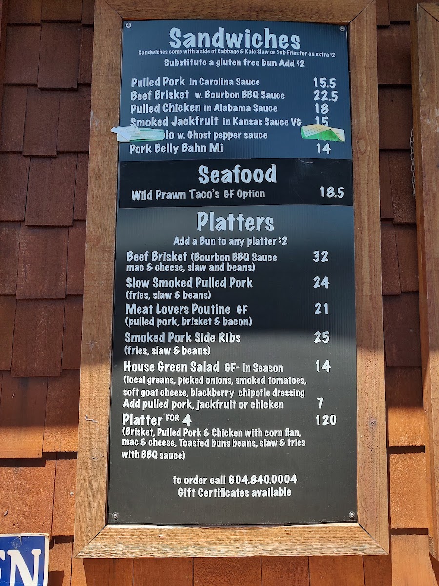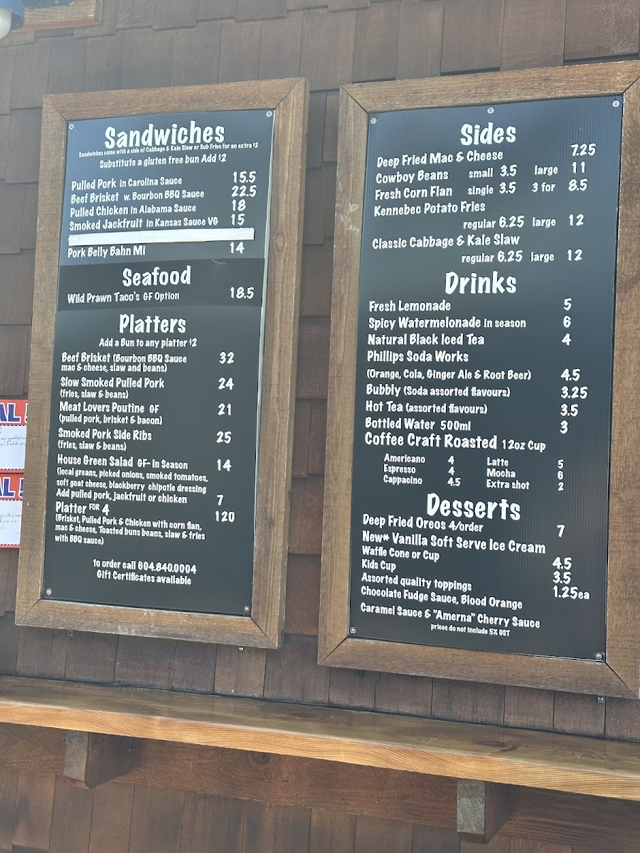 The menu at Smoke On The Water BBQ Shack feels like a confident showcase of comfort food done with bold BBQ personality, balancing smoked classics with playful, indulgent sides and desserts. Hearty options like the Meat Lovers Poutine set the tone with rich, savory flavors that immediately signal this is a place for serious appetites. Sandwich lovers are well covered, from the tender, smoky Pulled Pork Sandwich to the satisfying Brisket Sandwich with a Side of Coleslaw, where the slow-smoked beef pairs naturally with a crisp, refreshing contrast. For those wanting a fuller BBQ experience, the Brisket Platter delivers that unmistakable depth of smoke and texture that defines a proper barbecue kitchen.