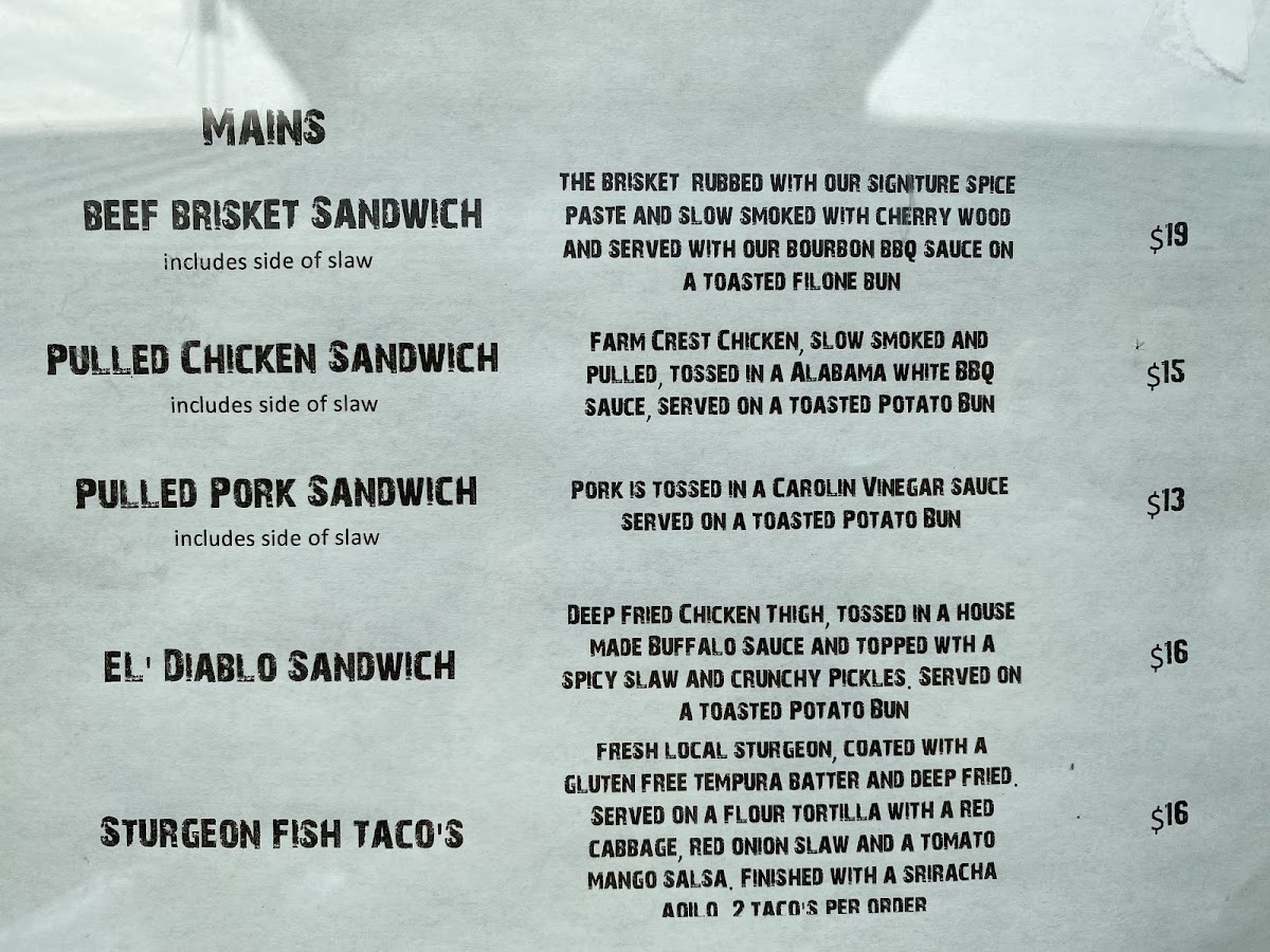 The menu also shows range and inclusivity, notably with the Smoked Vegatable Sandwich Vegan, proving plant-based diners aren’t an afterthought but part of the overall vision. More adventurous flavors come through in items like the El Diablo Chicken Sandwich, which adds a spicy edge, while the Sandwich Mac N Cheese leans fully into comfort with a rich, satisfying bite. Seafood options such as the PO Boy Oyster Burger and Fried Shrimp Tacos broaden the menu beyond traditional BBQ, offering lighter yet still indulgent alternatives.